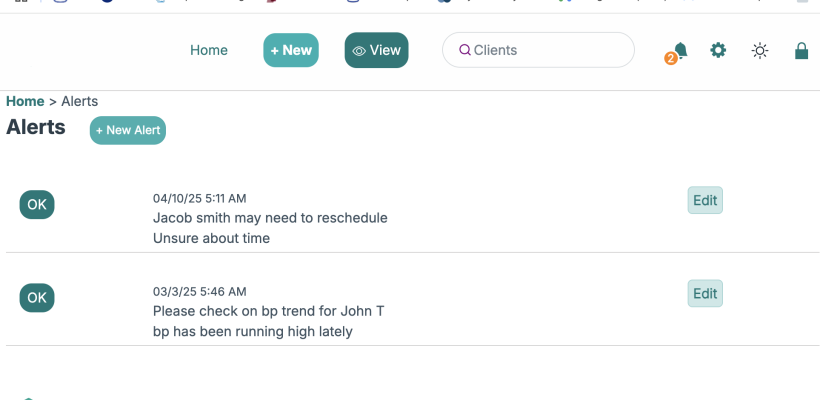 Or you can create alerts for your own use. These work great as a "to do" list for helping to keep track of various things for your practice.