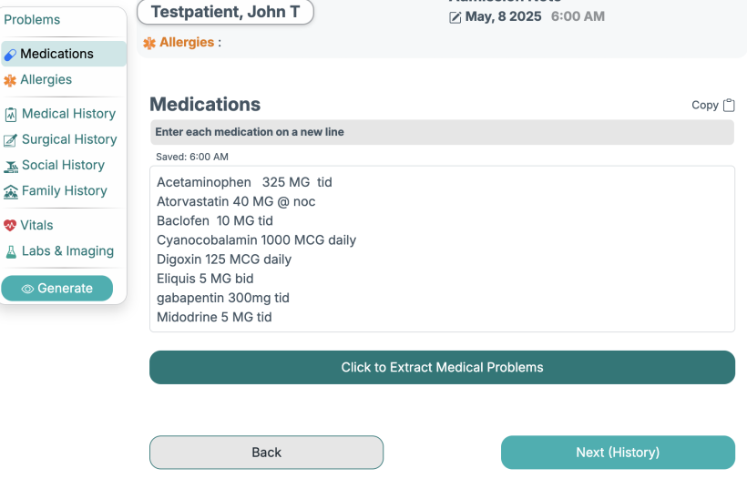 If you don't have medications entered, it will take you to the medications page, and after entering the medications, you will see an "Extract Medical Problems" button.