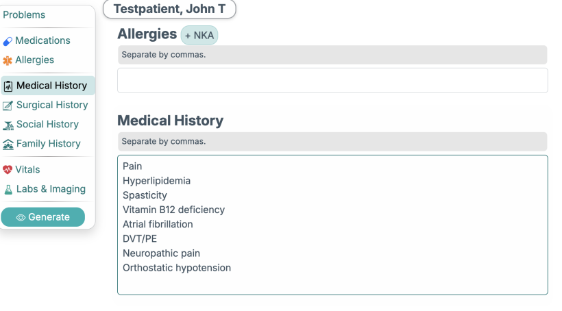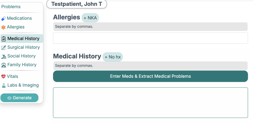 When creating a new client or note and you have an empty medical history, just click the "Extract Medical Problems" button.
