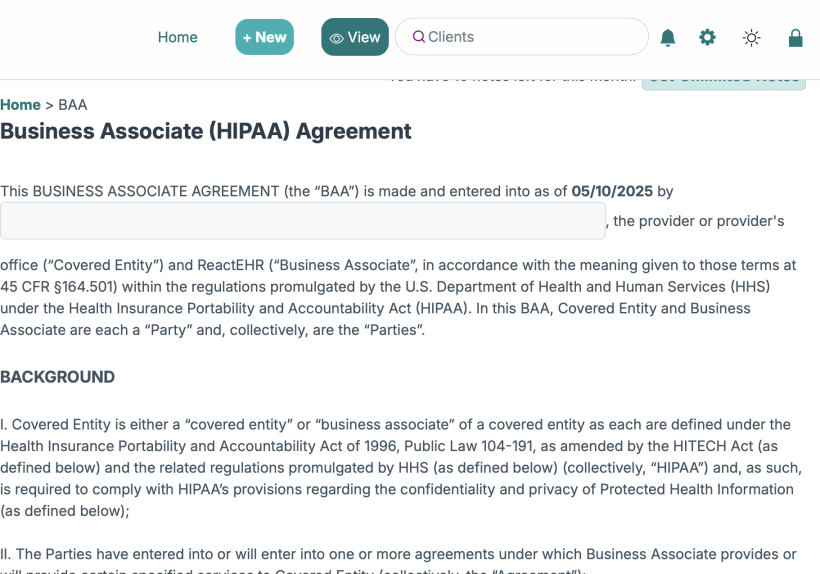 A BAA is a legal agreement that outlines how we protect patient information. It ensures both you and our platform follow HIPAA regulations when handling PHI.