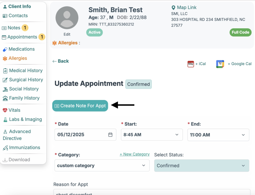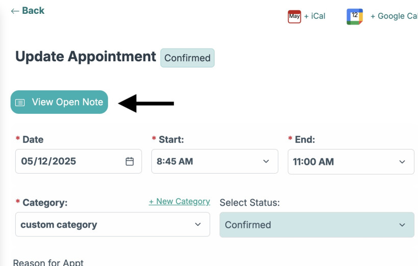 You can also view the note that is linked to that appointment, by clicking the "View Open Note" link on the Appointment page.