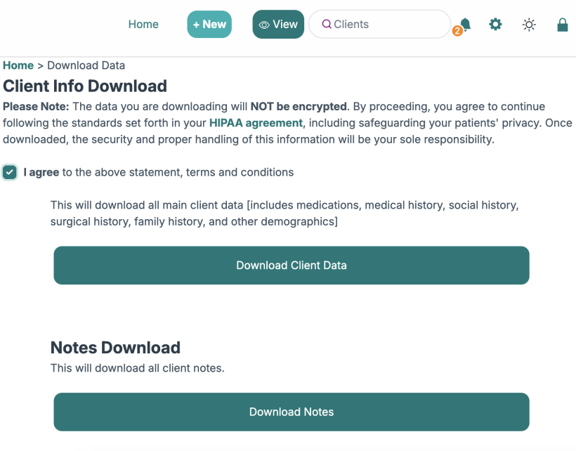 HIPAA agreement (if not already done) in order to safely download all the data.