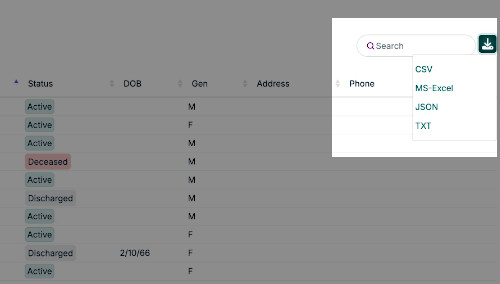 You can download appointments, notes or client data by clicking the respective "View" option (i.e. View Clients, View Notes, or View Appts). On the datatable, there is a download icon, click this and a drop down will show allowing you to select the file type to download.